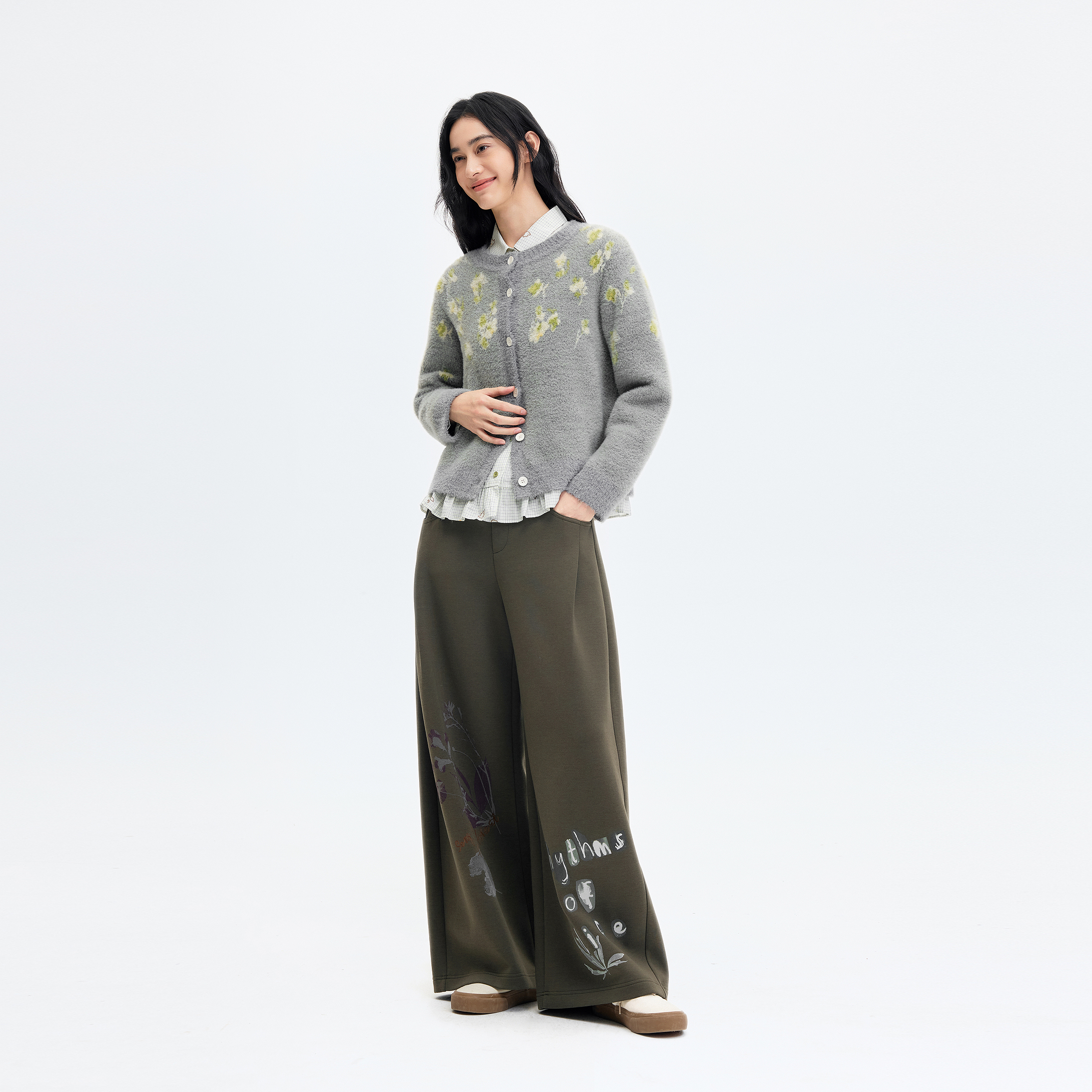 女2025冬季 休闲裤 新款 时尚 厚针织裤 飞鸟和新酒显瘦高腰弯刀裤