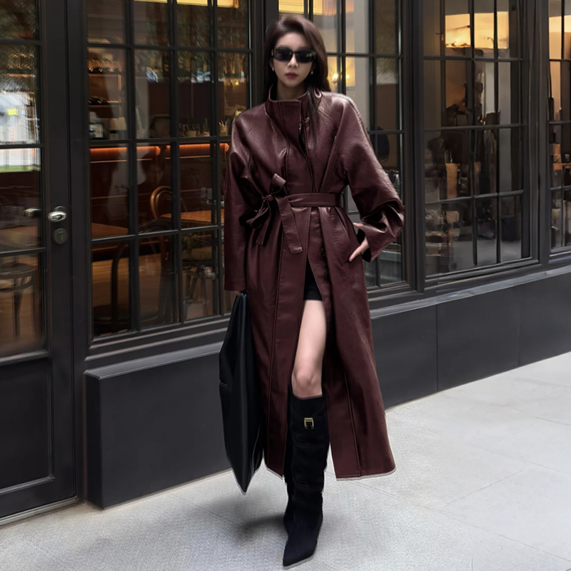 LYNEE 高级感复古蛋白PU皮夹克 高端大牌棕色皮衣外套女2025秋新款