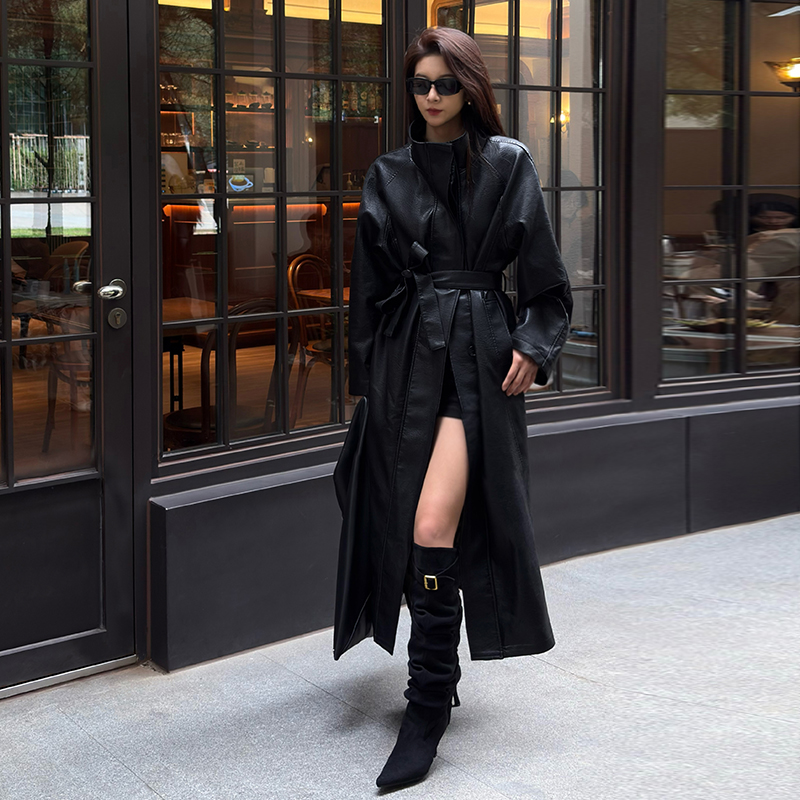 暗夜黑立领PU皮衣外套女MOFAN摩凡2025秋款 显瘦 酷飒风皮夹克短款