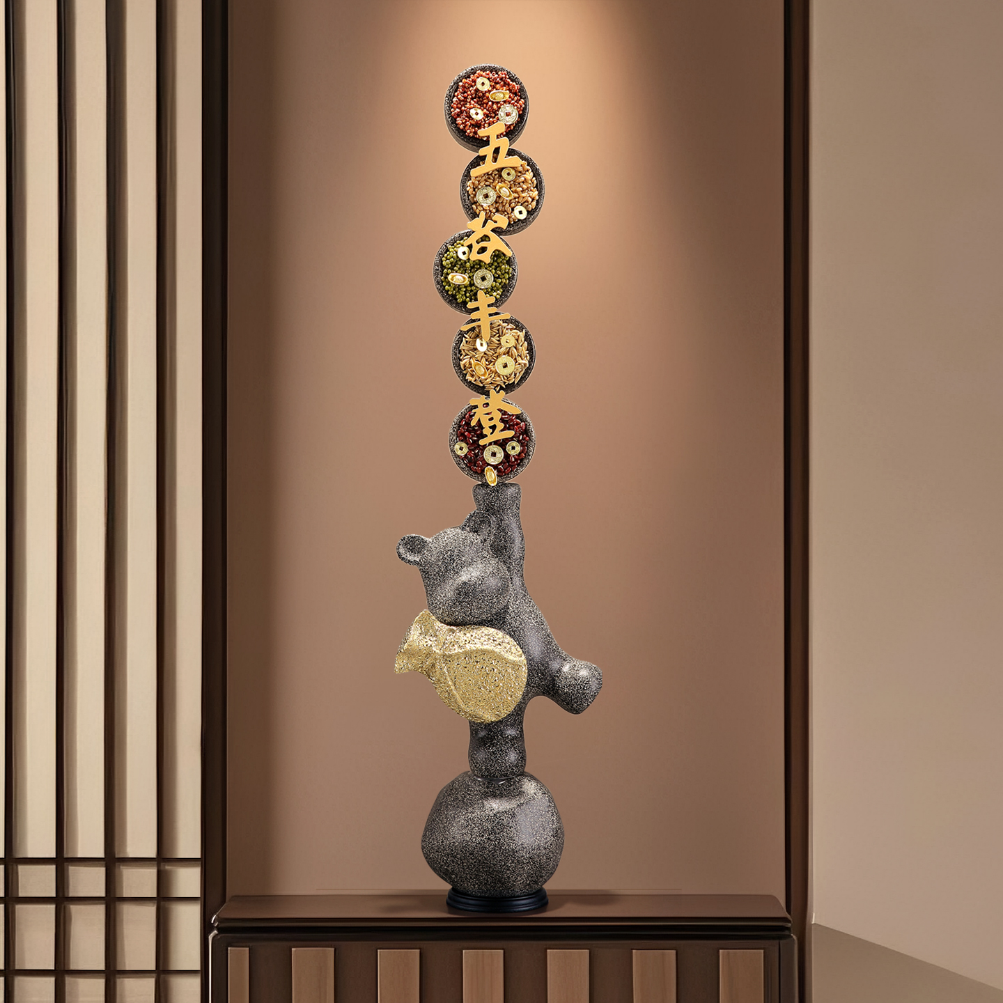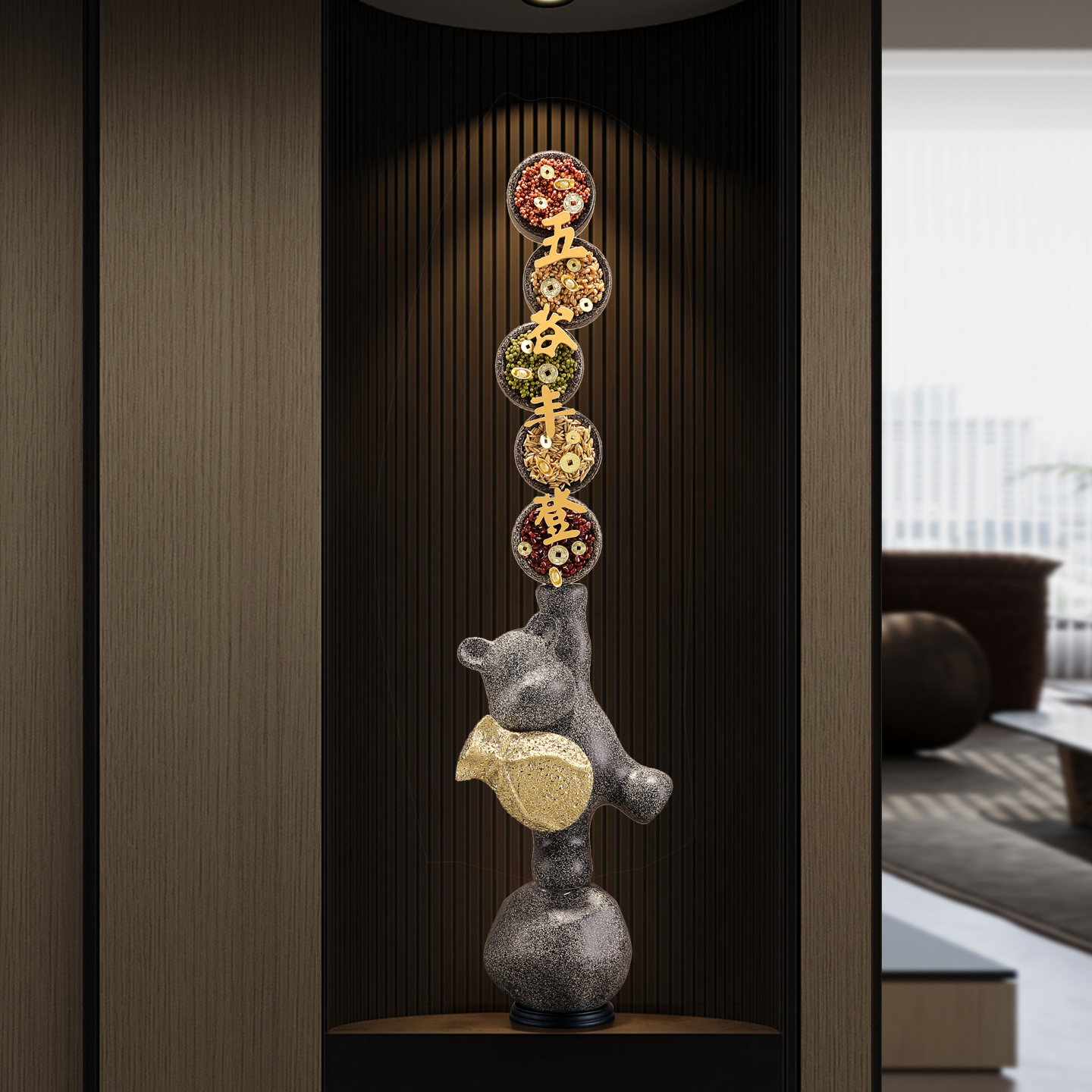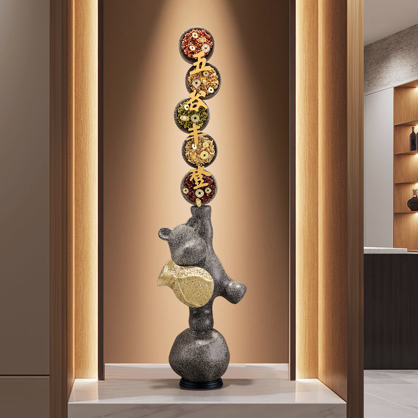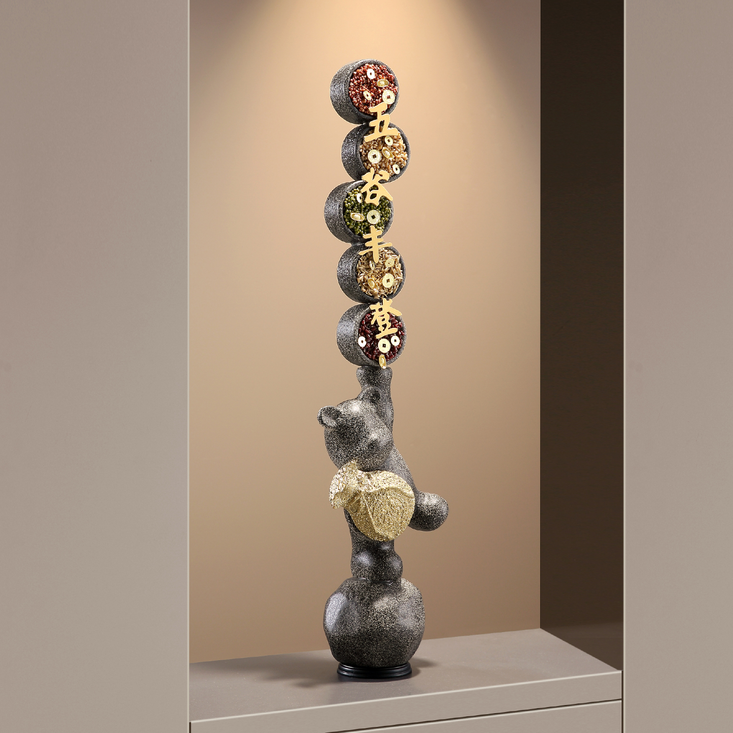 入户玄关细长竖高陶瓷五谷丰登熊摆件高级感家居装 饰客厅乔迁礼物