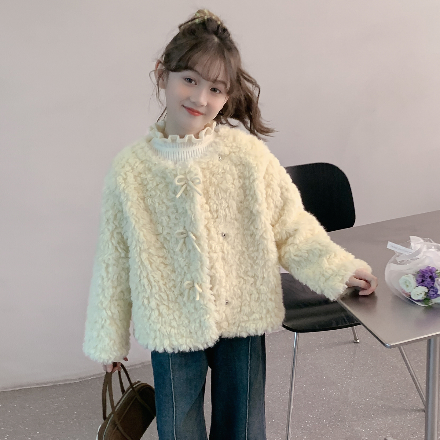 潮 儿童网红洋气小香风加厚毛毛衣女孩冬装 女童外套秋冬款 2025新款