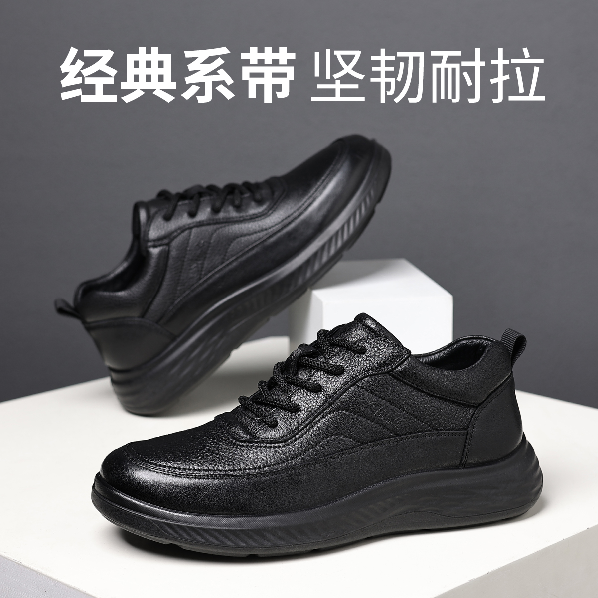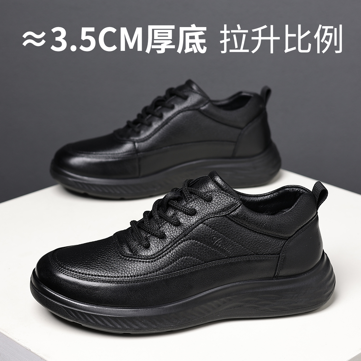 商务休闲上班通勤结婚增高黑色大圆头厚底德比鞋 正装 男款 回力皮鞋