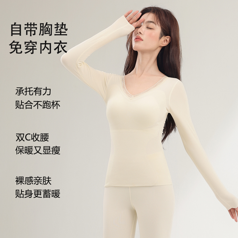 美体套装 婷美保暖内衣女免穿文胸修身 秋衣秋裤 2025秋冬新款 打底衫