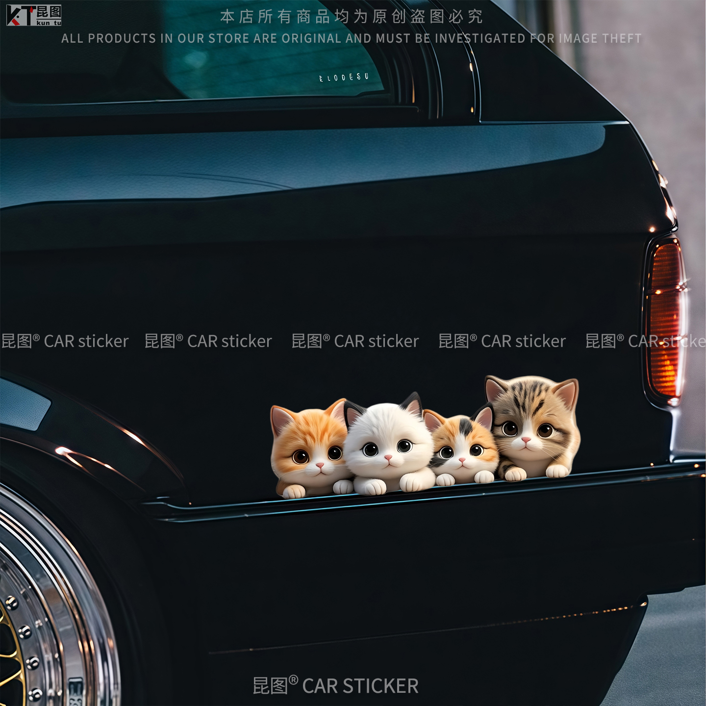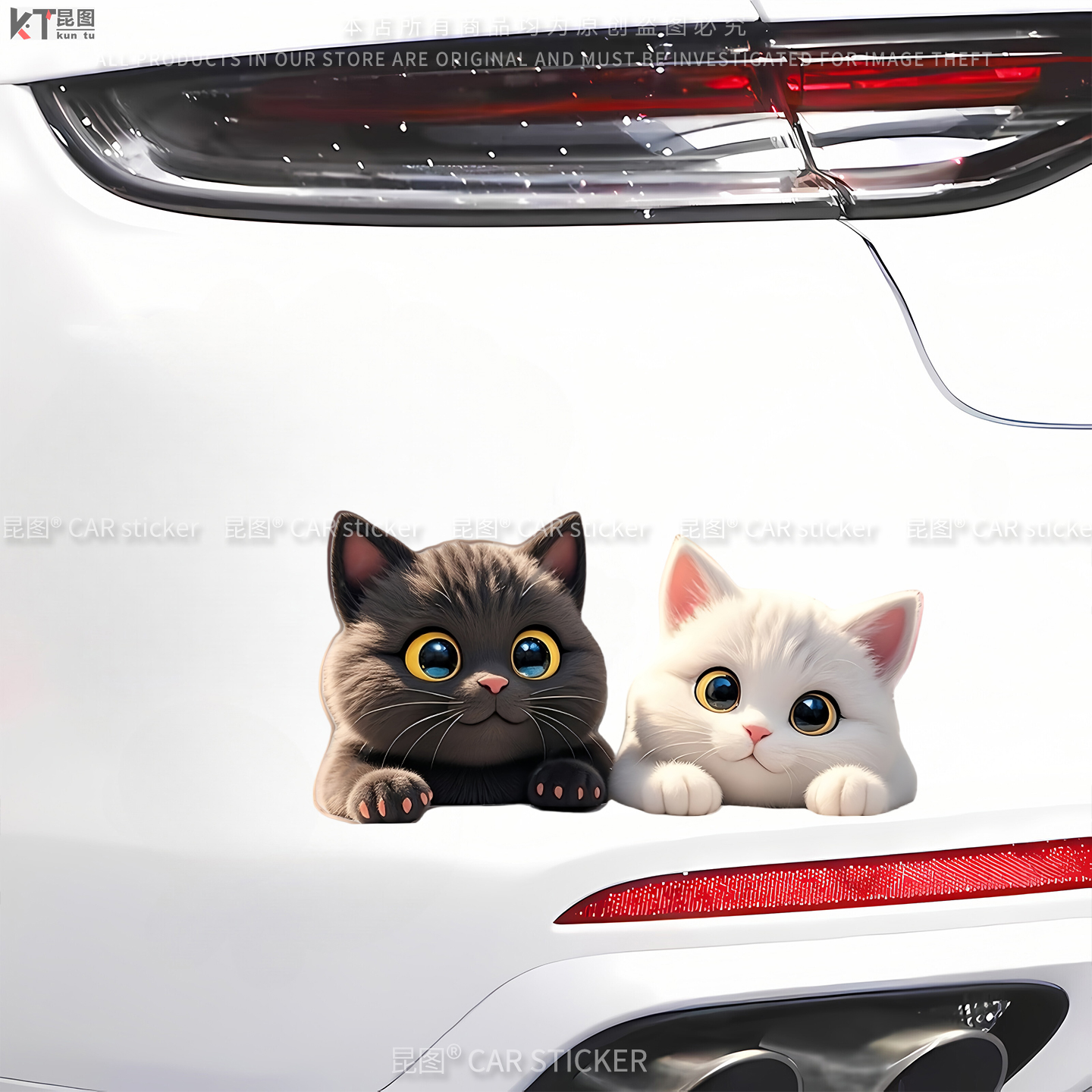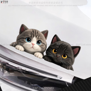 汽车贴纸猫咪3D立体创意装 饰车窗车尾车门长条车身遮挡划痕电动车