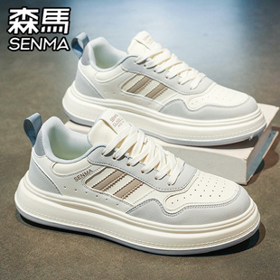 真皮防水运动增高小白鞋 森马男鞋 男士 高级感百搭休闲低帮板鞋 秋季