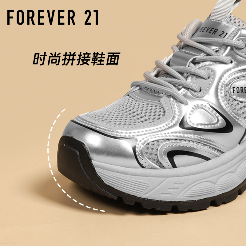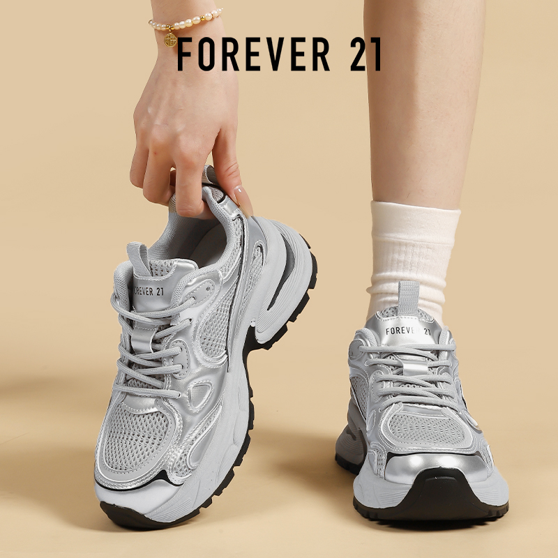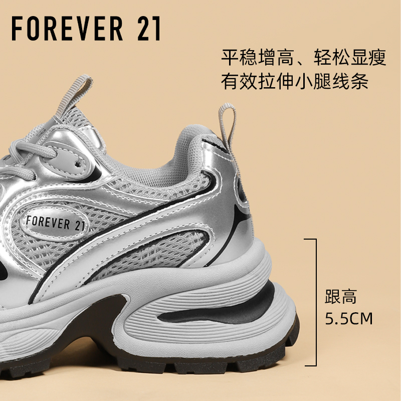 软底超轻小个子增高百搭运动鞋 秋季 女2025新款 F21银色厚底老爹鞋