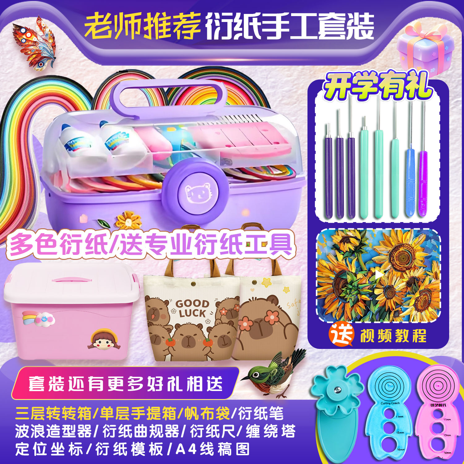 达人推荐 工具材料包初学者DIY手工制作学生衍纸画线稿图渐变折纸初学者衍纸画线稿图diy收纳盒儿童 衍纸套装