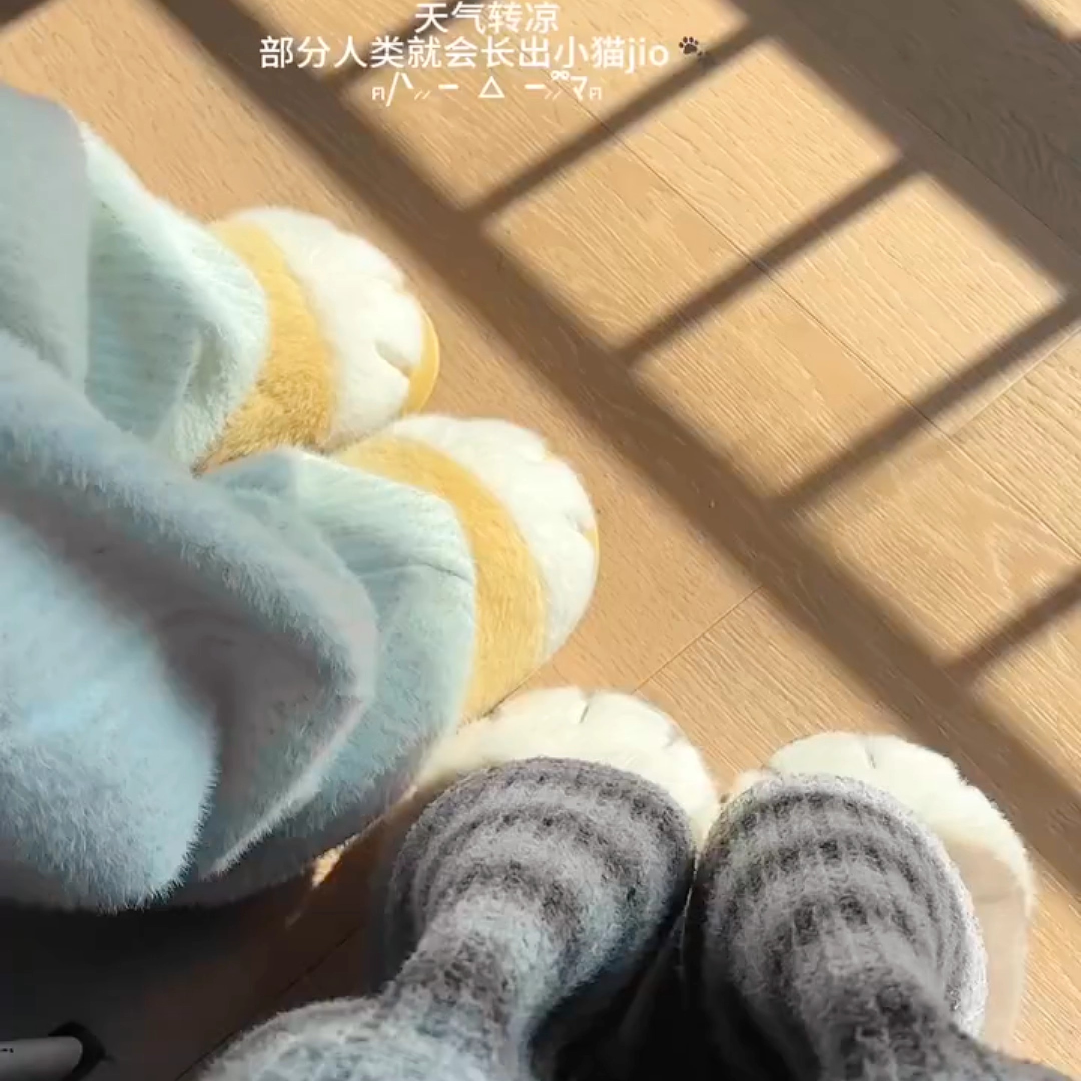 毛拖鞋 可爱猫爪拖鞋 厚底棉拖鞋 秋冬季 女外穿情侣居家 棉拖2025新款