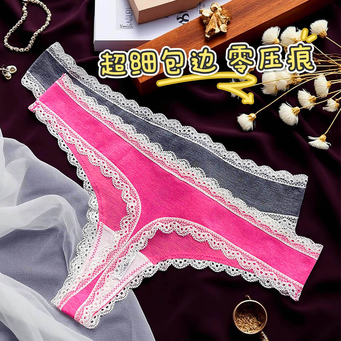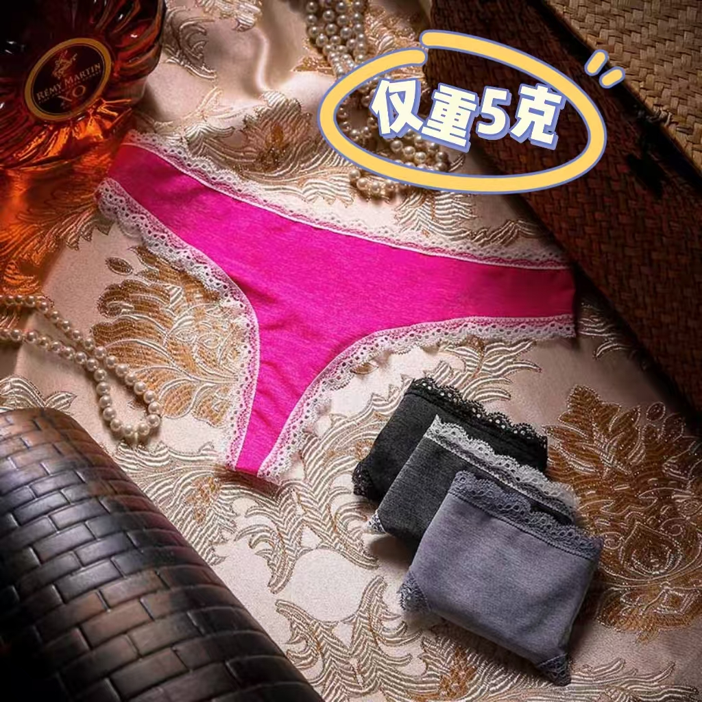 性感无痕女士丁字裤 舒适透气纯棉裆隐形精致 蕾丝边瑜伽健身T内裤