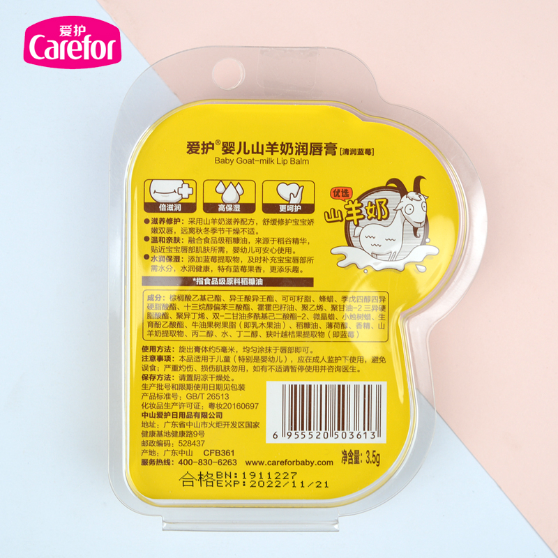 爱护婴儿山羊奶润唇膏3.5g宝宝儿童防止嘴唇润唇温和滋润保湿