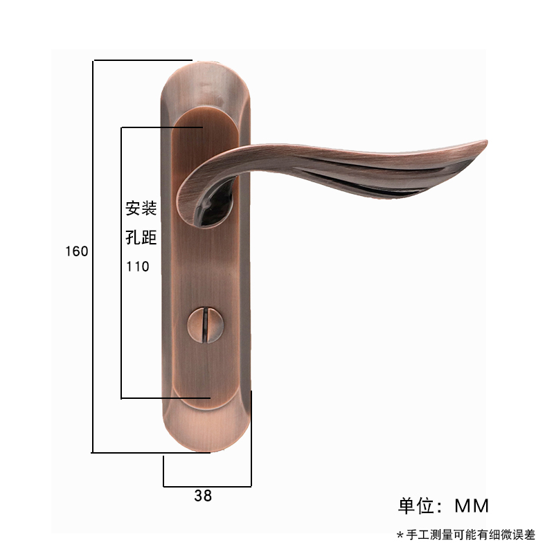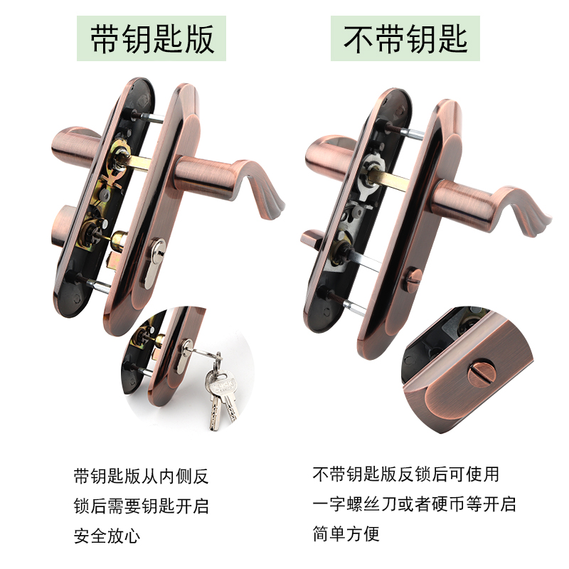 卫生间门锁通用型厕所洗手间室内浴室家用执手无钥匙凹面斜门把手