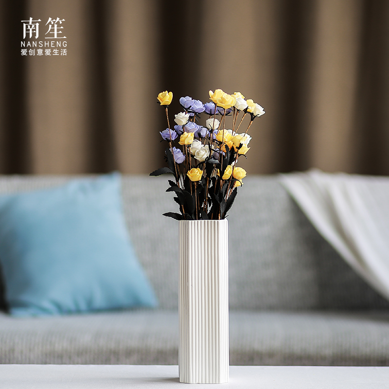 南笙 仿真花干花陶瓷花瓶插花花器家居饰品台面摆件 现代简约欧式