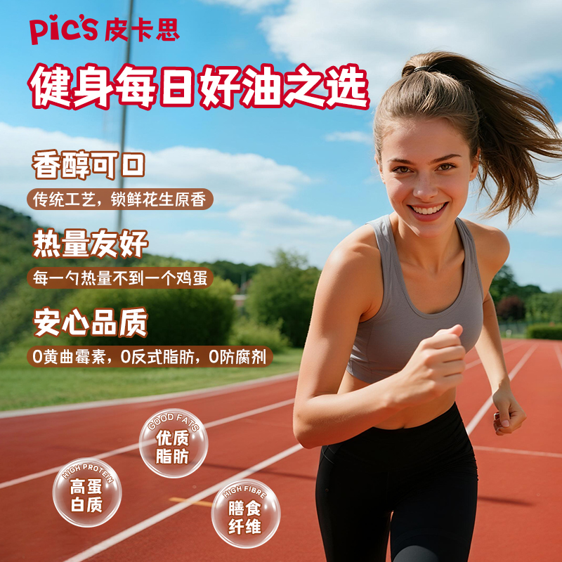 Pics皮卡思早餐优质脂肪海盐颗粒纯花生酱无添加195g火锅酱健身