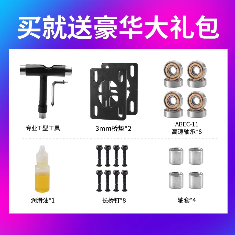 滑板陆冲板轮子双翘板刷街轮减震长板四轮滑板磨砂大小鱼板闪光轮