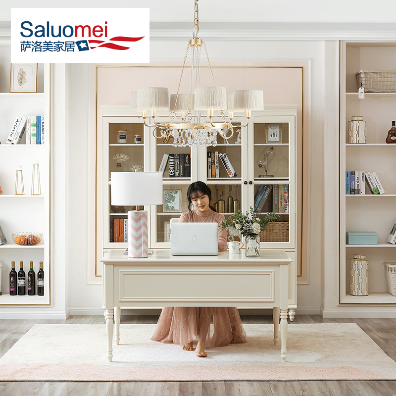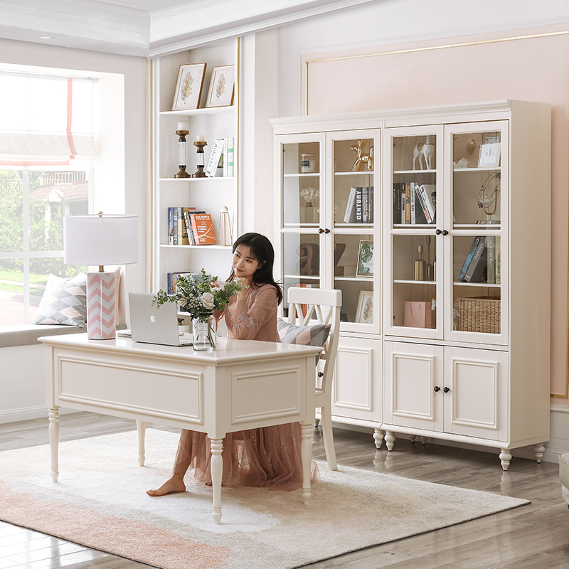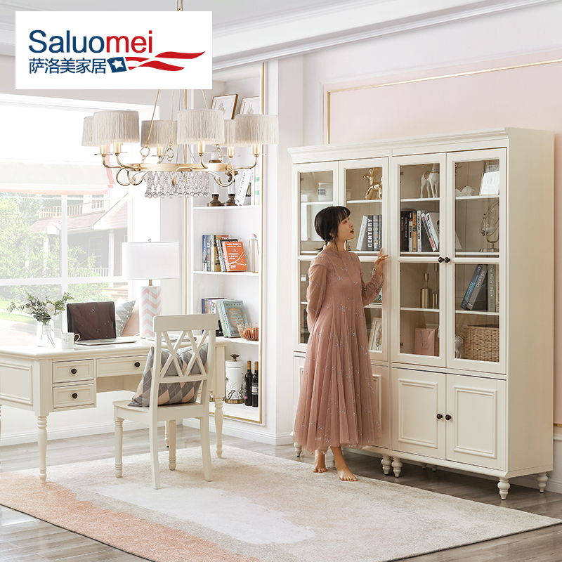 美式 全实木书柜书架小户型置物柜白色现代简约储物展示柜书房家用