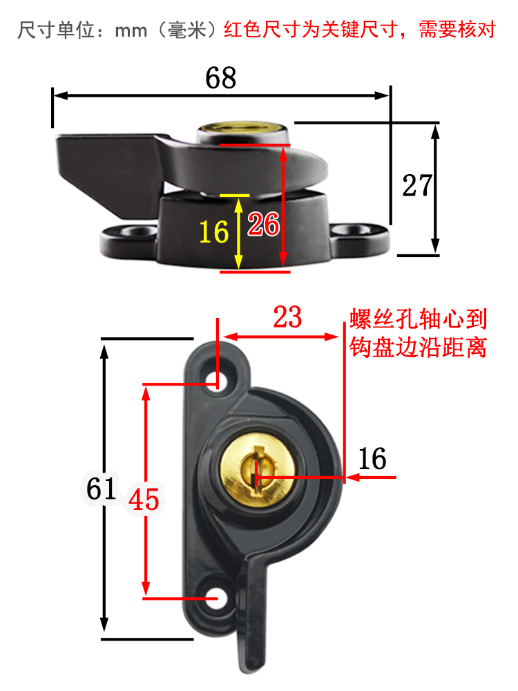 迪福德 带钥匙月牙锁铝合金门窗儿童锁推拉塑钢窗防盗挂钩锁搭扣