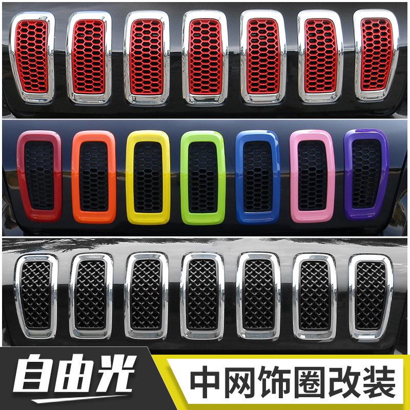 饰改装 外饰中网前脸亮圈七彩装 18年吉普jeep自由光改装 适用于14