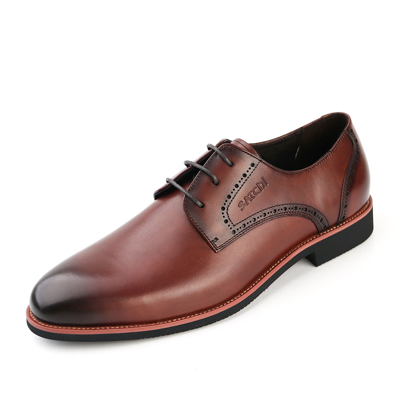 2025秋冬新款 男鞋 商务鞋 增高皮鞋 子 软底休闲系带圆头正装 奥康男鞋