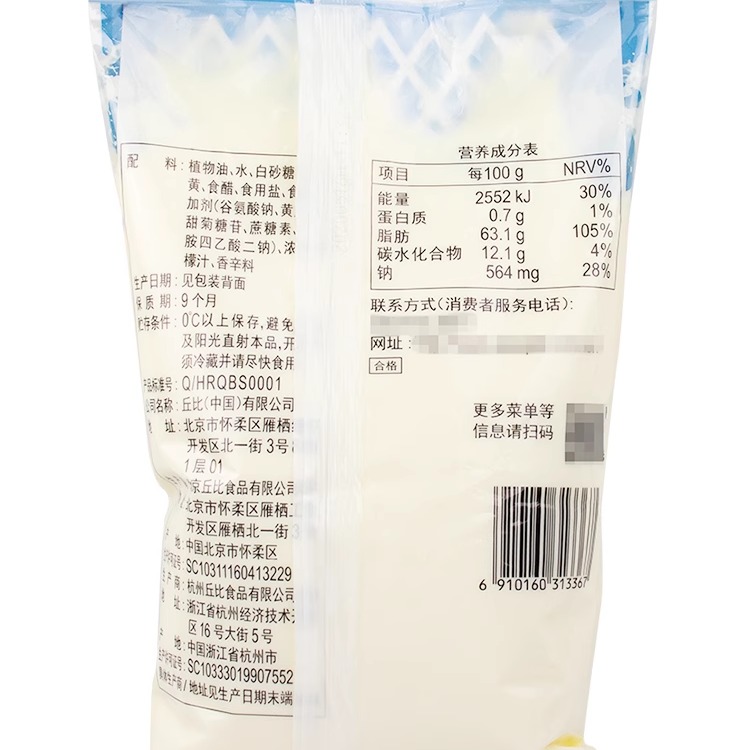 丘比沙拉酱香甜味1kg 水果蔬菜色拉肉松小贝寿司汉堡丘比特沙拉酱