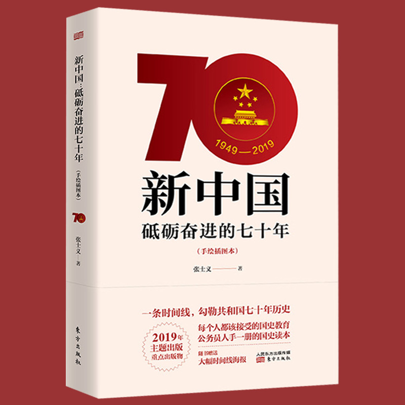 赠时间线海报 2019年主题重点出版 新中国砥砺奋进 张士义 物庆祝新中国建立70周年国史教育党史党建读物H 七十年手绘本 正版