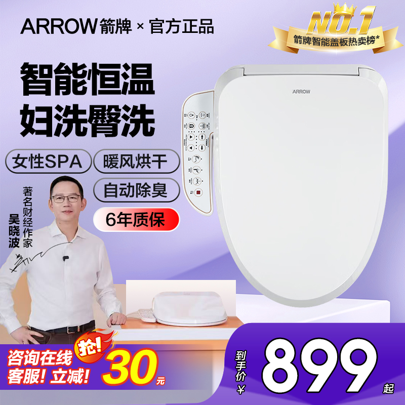 箭牌智能马桶盖全自动家用 抗菌加热马桶圈即热坐便盖板冲洗器U形