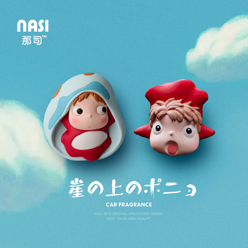 金鱼姬波妞车载香水香薰车内出风口可爱卡通扩香石装 饰品汽车用品