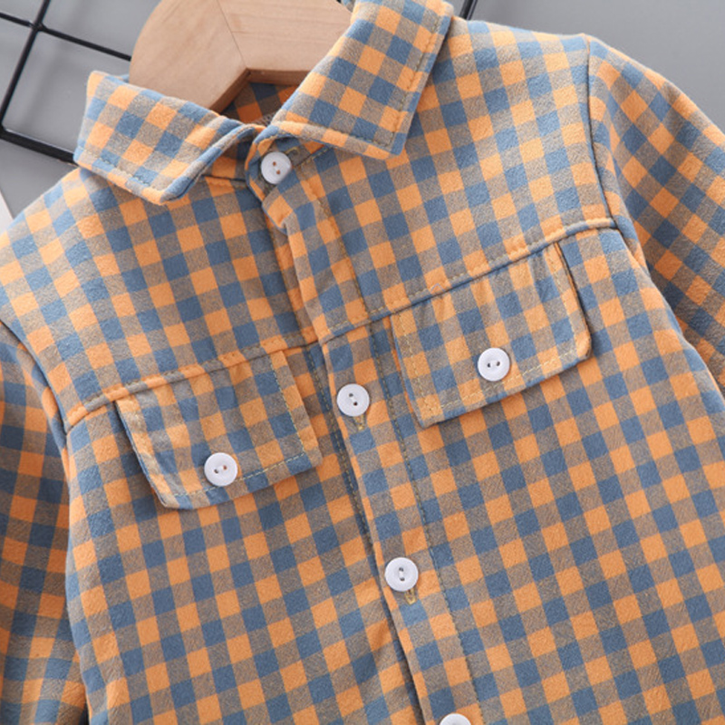 撞色格子口袋休闲宽松美式 男长袖 翻领衬衣510182 衬衫 三福2025冬季