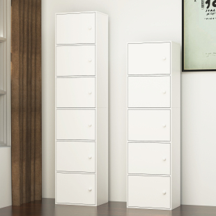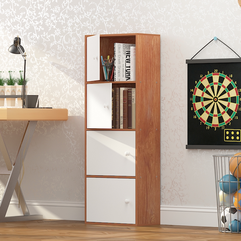 多层书柜书架带门实木色简易置物柜收纳柜简约现代墙角柜子储物柜