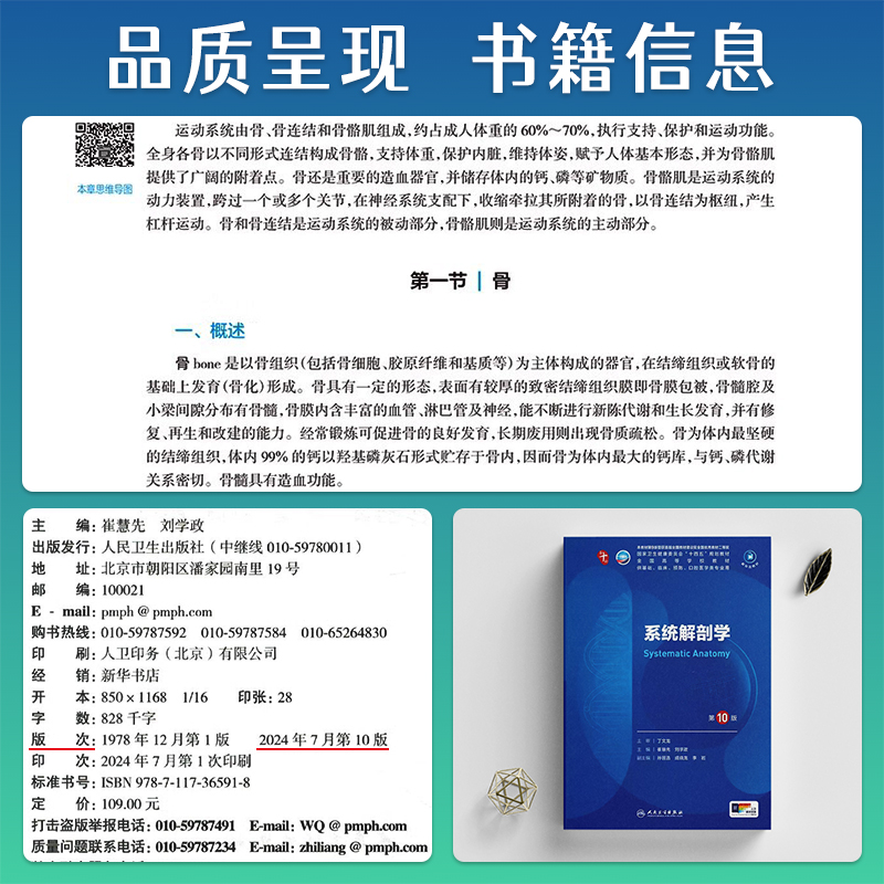 轮本科临床西医学人体解刨学彩色教材书图谱组织学与胚胎生物病理生理内外妇产儿科局部人民卫生出版 十版 社考研 第10版 系统解剖学