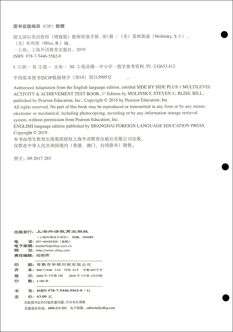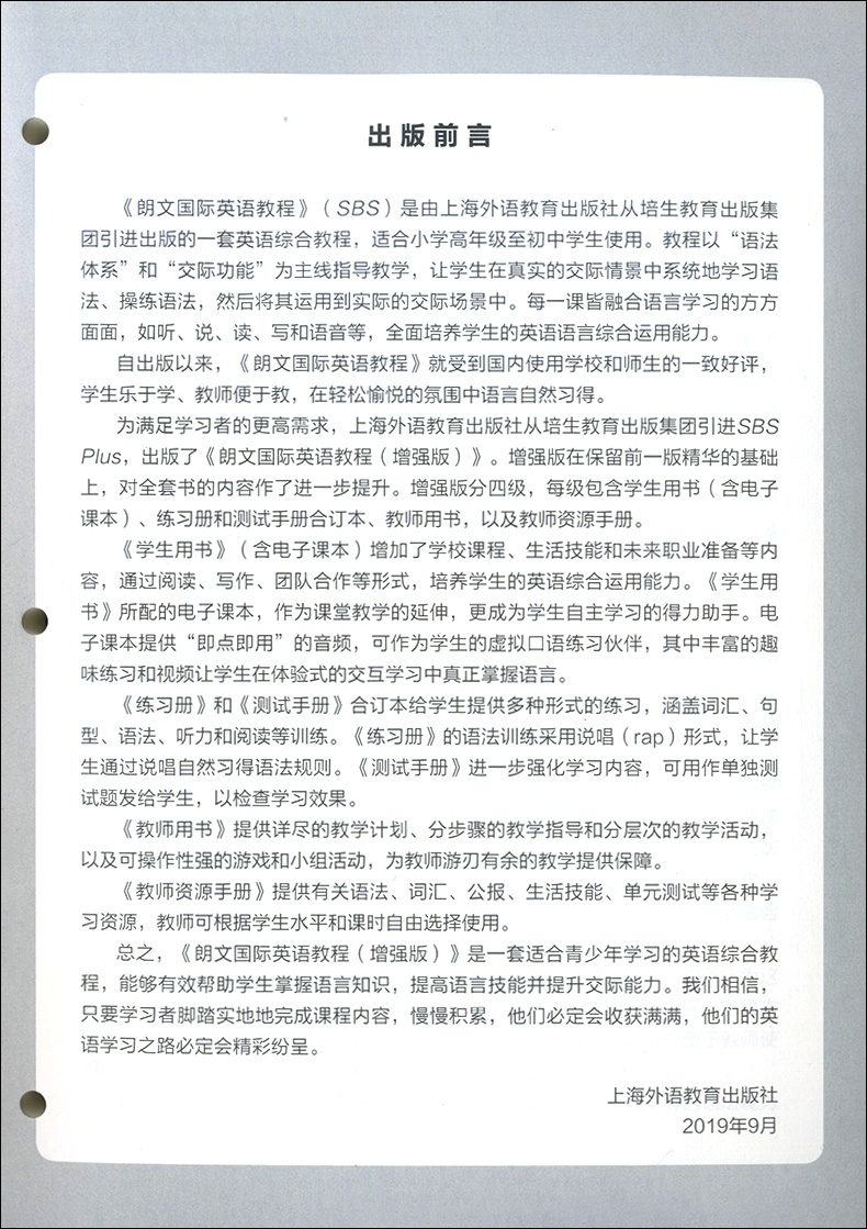 教师资源手册 上海外语教育出版 Plus增强版 青少年暑寒假期培训教材朗文国际英语教材教用 社 第一册第1册 SBS朗文国际英语教程1