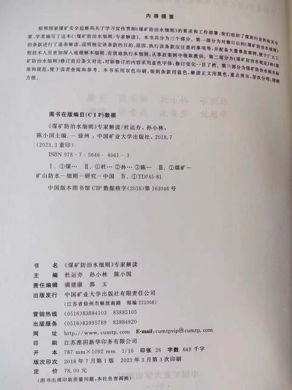 社 全新正版 2023年重印修订中国矿业大学出版 煤矿防治水细则专家解读 煤矿安全书籍 现货