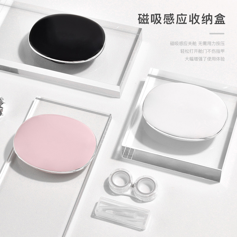 隐形眼镜盒高级感简约便携日式 冷淡风眼形护理收纳美瞳盒子带镜子