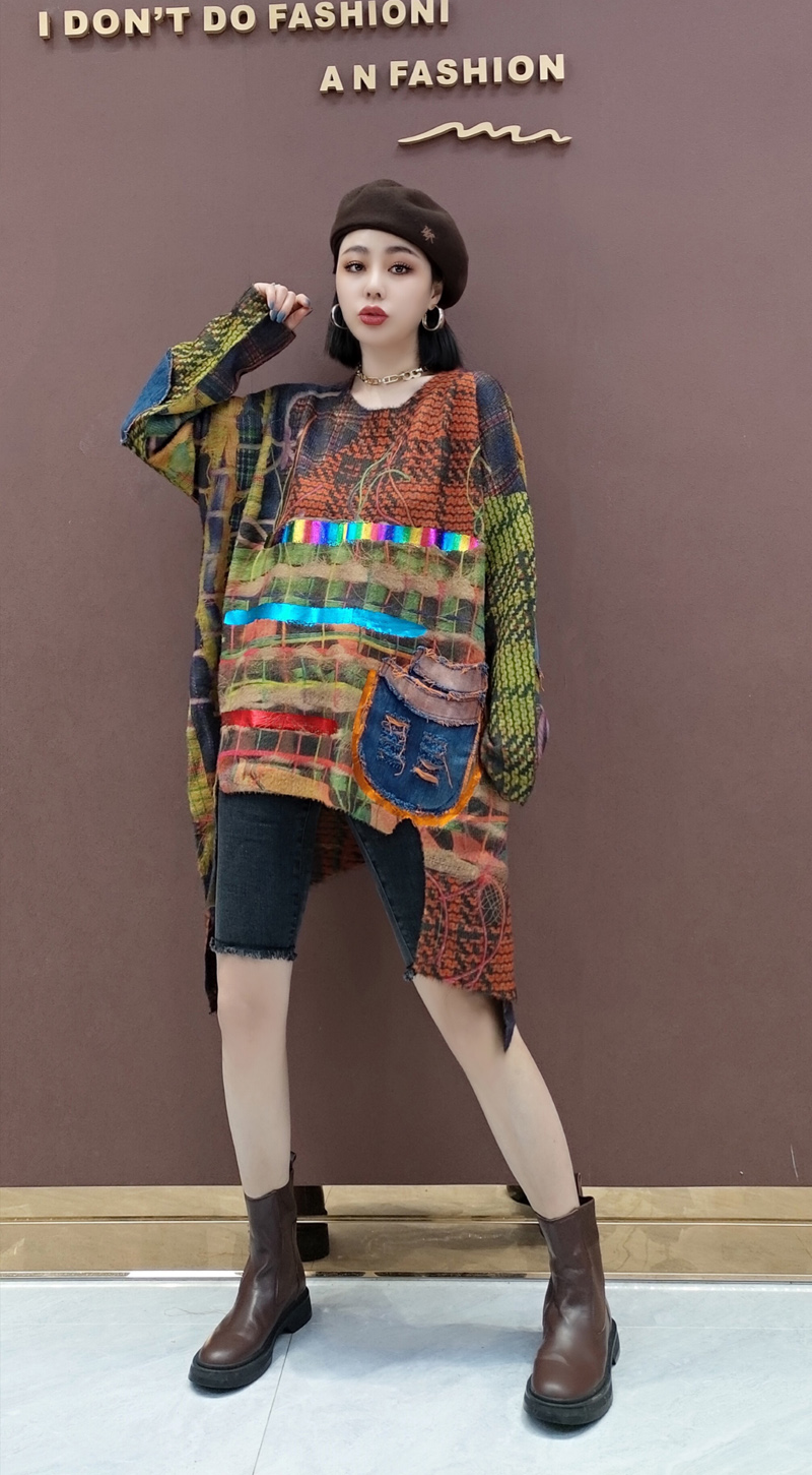 穿搭长裙子 新款 阔色假两件针织毛衣背带裙长袖 连衣裙女2025秋冬季