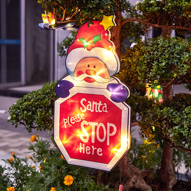 圣诞太阳能户外装 饰品灯糖果立体地插灯圣诞老人小鹿庭院花园摆件