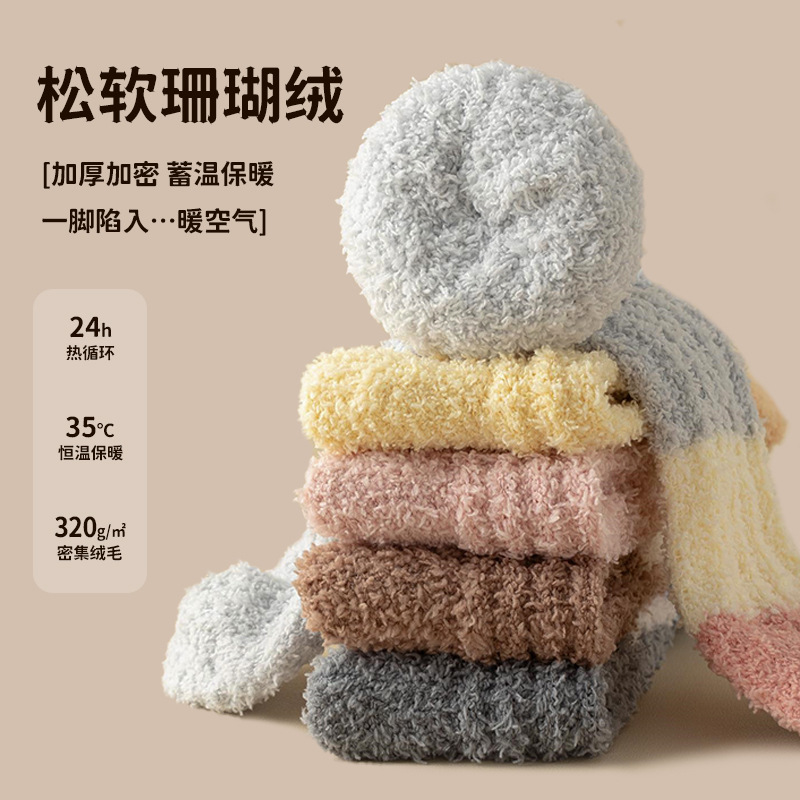 拉夏莉亚袜子女秋冬厚珊瑚绒睡眠地板袜中筒保暖情侣款 居家月子袜