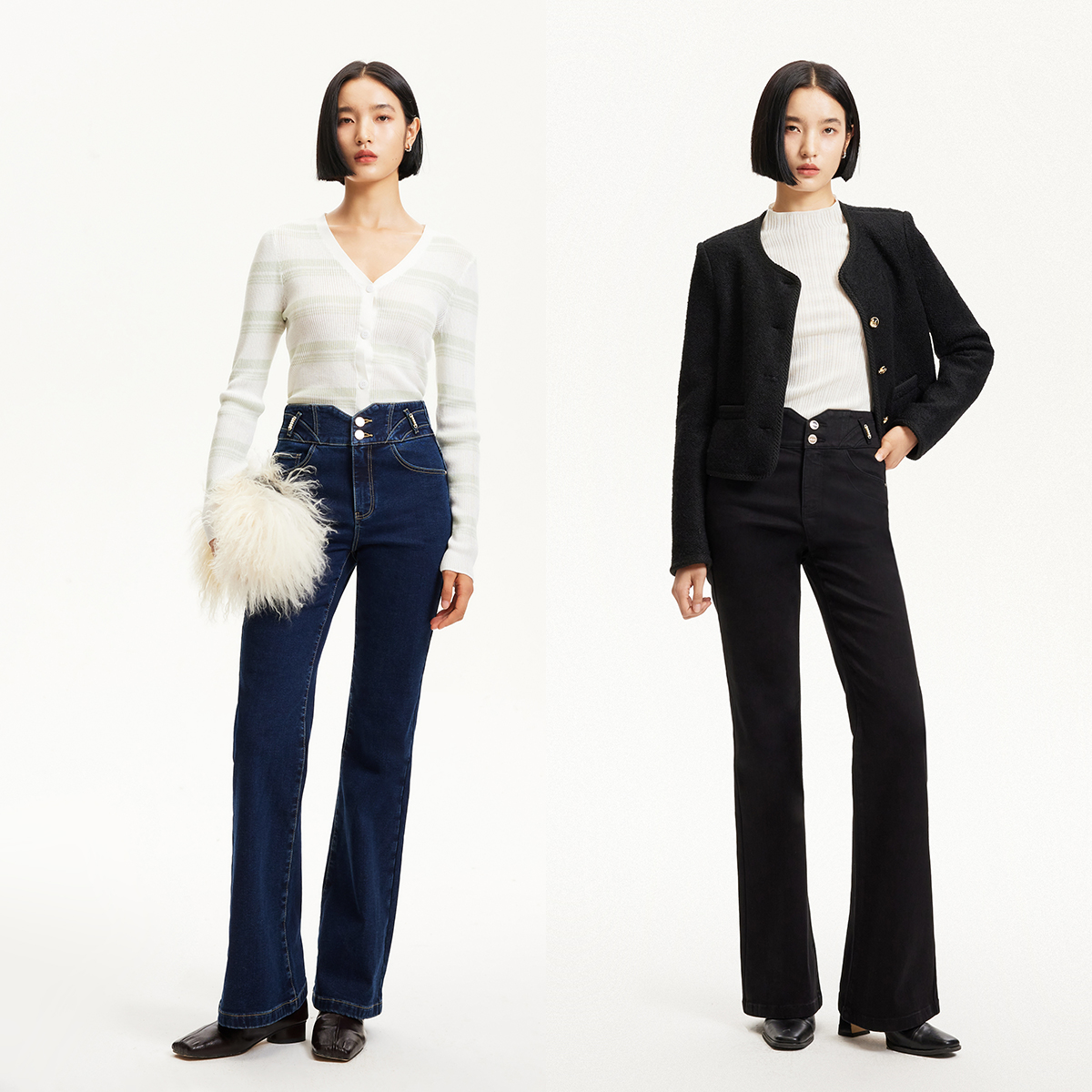 新款 ONLY奥莱2025秋季 高腰喇叭裤 长裤 女 微喇牛仔裤 热销爆款