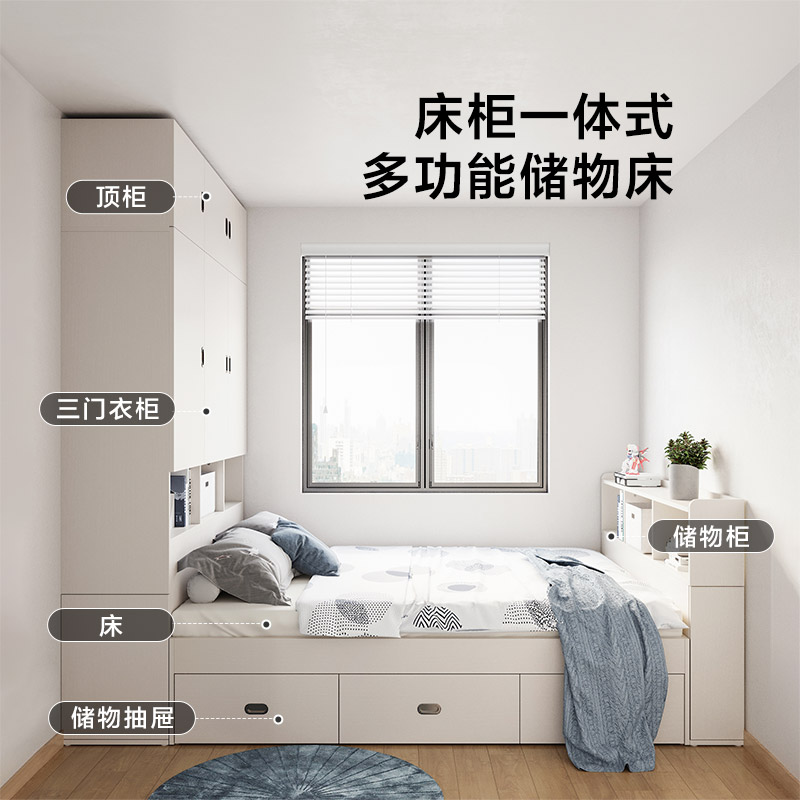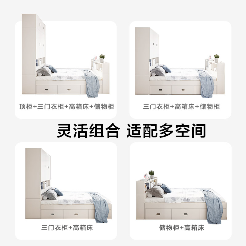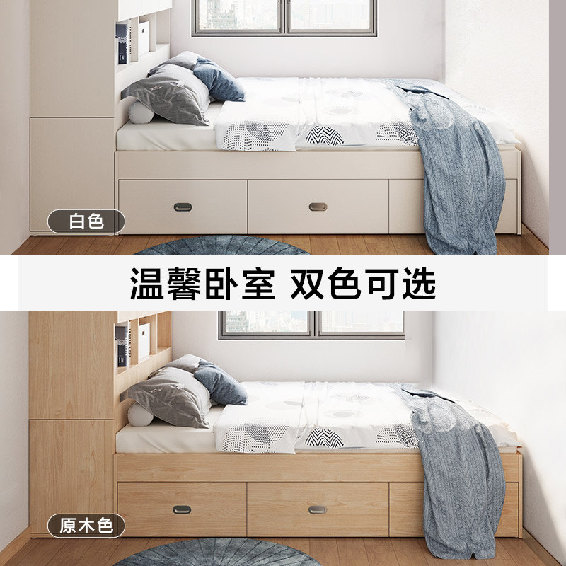 林氏家居单人床1米2高箱储物床榻榻米收纳床地台无床头床林氏木业