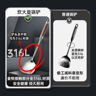 炊大皇锅铲316L不锈钢加厚炒菜铲子漏勺汤勺家用厨具炒勺套装 铁铲