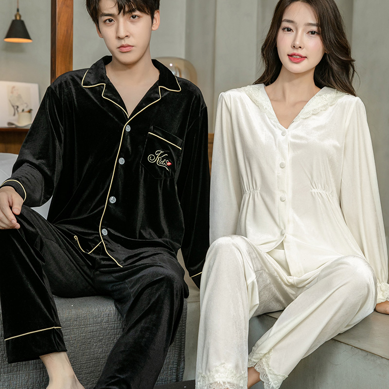 长袖 家居服套装 开衫 秋冬可外穿秋冬款 男士 情侣睡衣女金丝绒春秋季