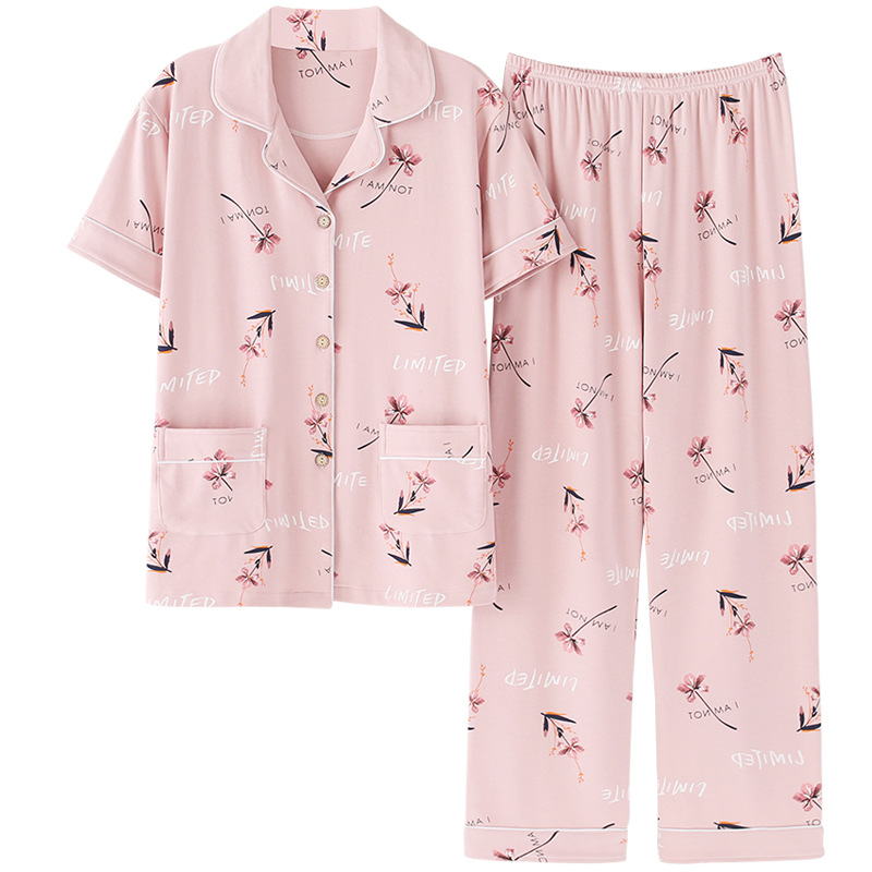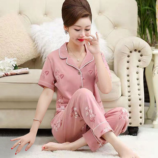 薄款 2025新款 短袖 套装 可外穿家居服 长裤 猫人纯棉带胸垫睡衣女夏季