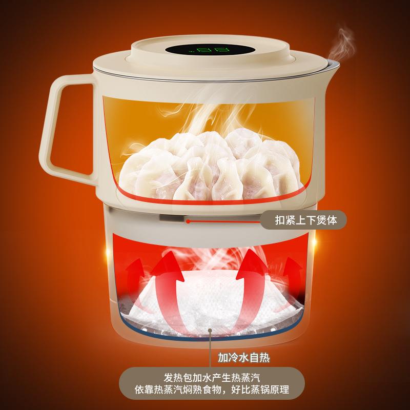 出差自热锅304不锈钢电饭煲电煮锅无线电热饭盒户外用宿舍煮火锅