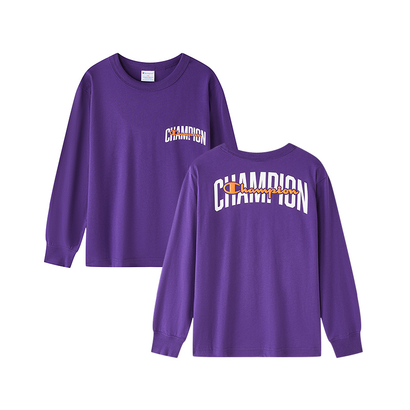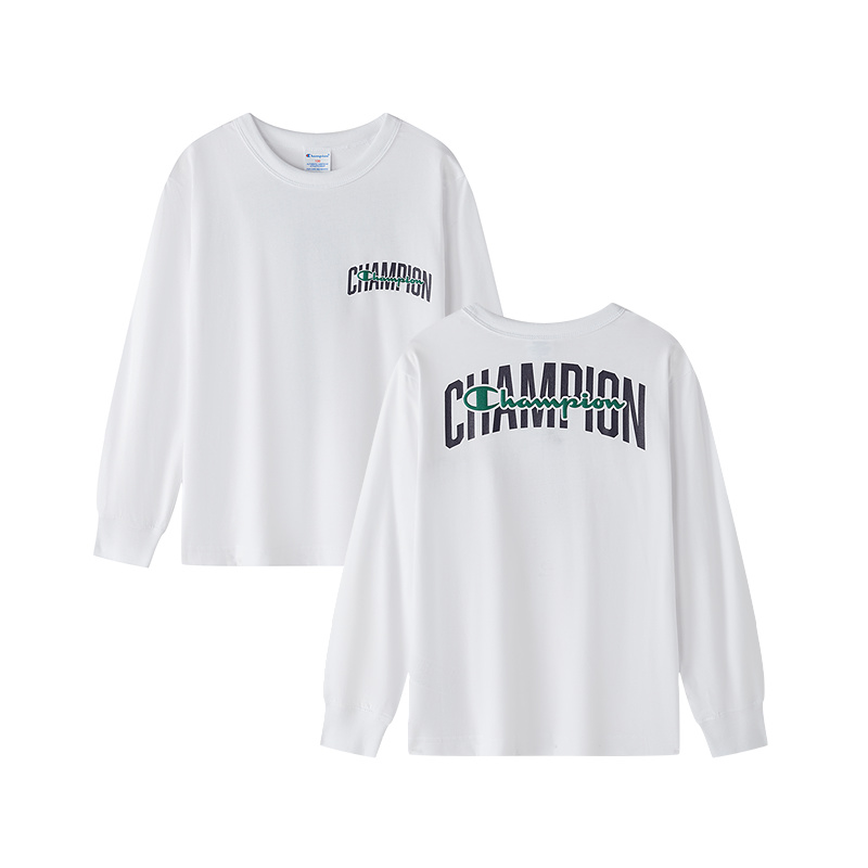 潮流复古LOGO标日常学院长袖 新款 T恤 25秋季 Champion冠军男女童装