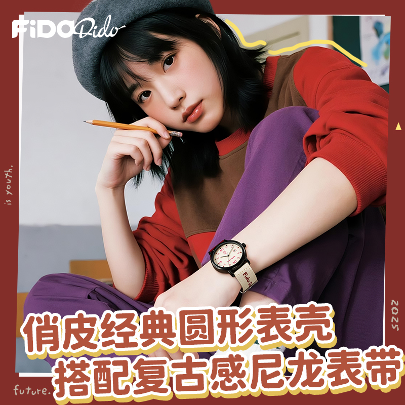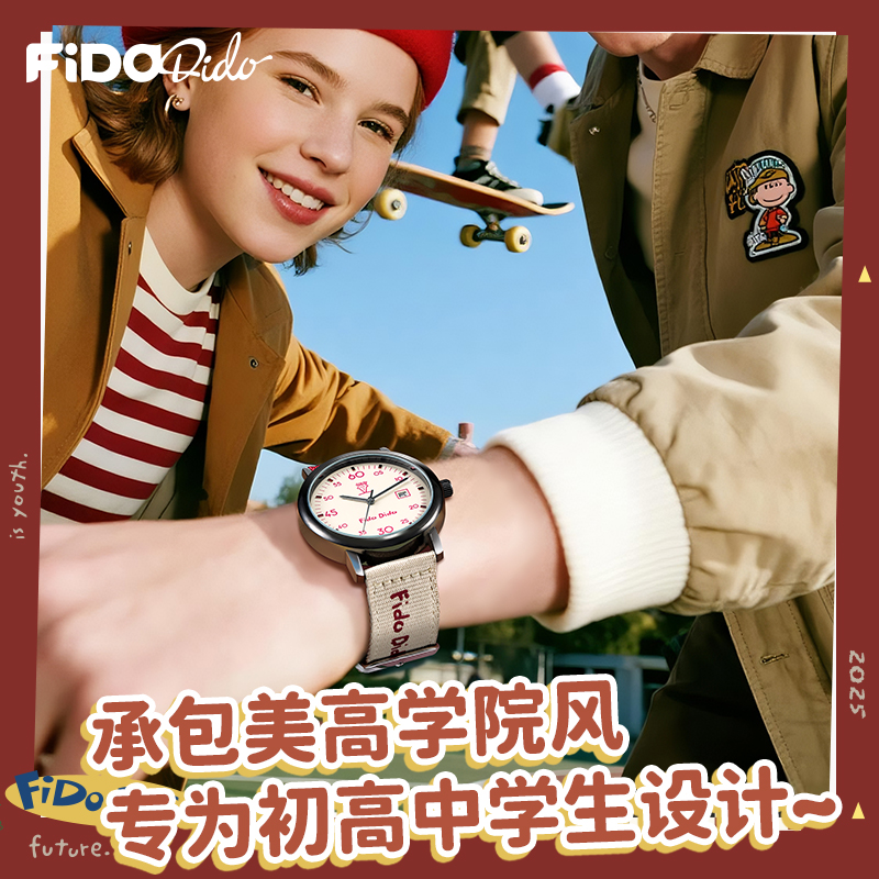 FidoDido「西柚美式 撞色考试腕表 」男女学生手表校园初中高中个性