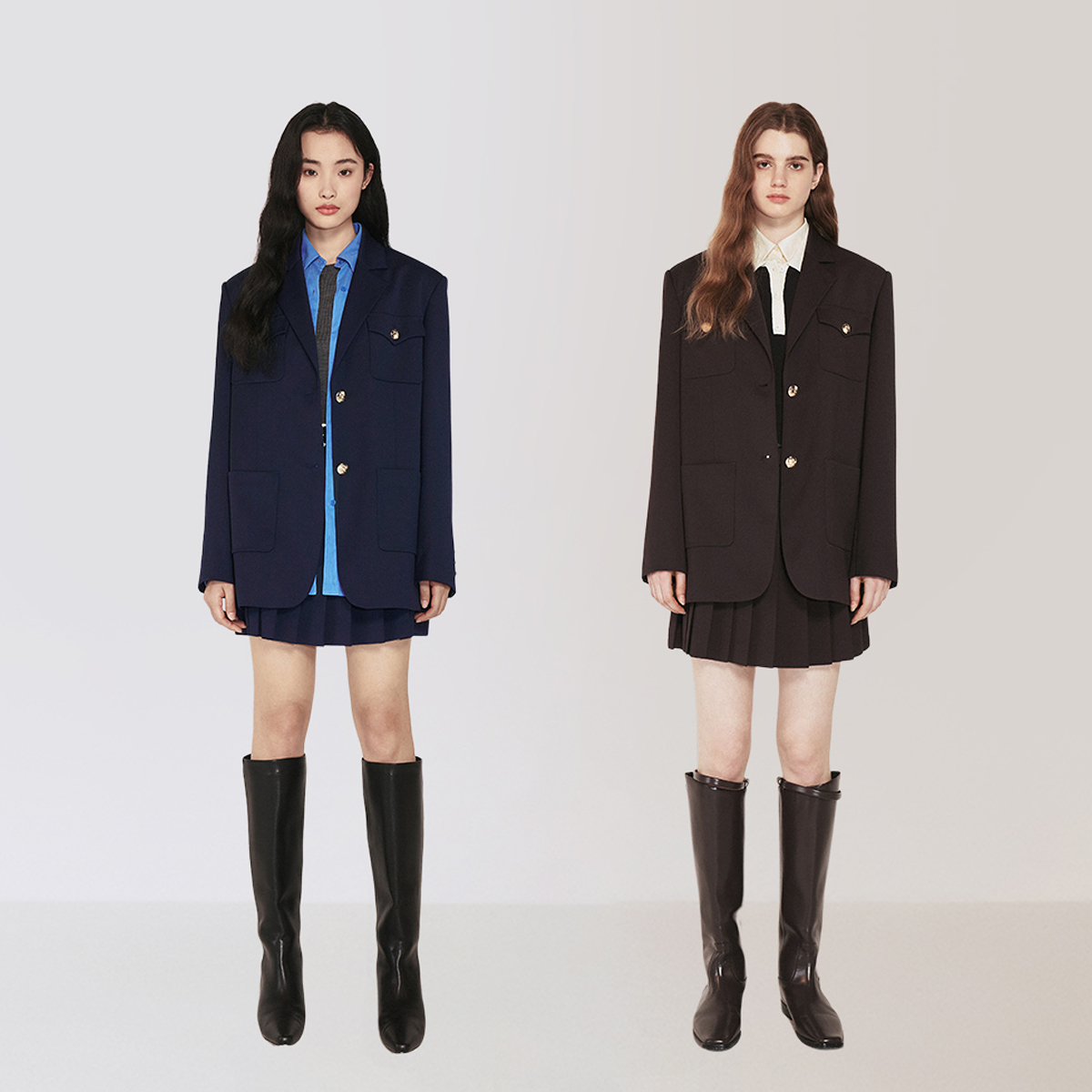 女秋时尚 套装 半身裙两件套 Petra老钱风高级光泽感灰银色西装 Neko