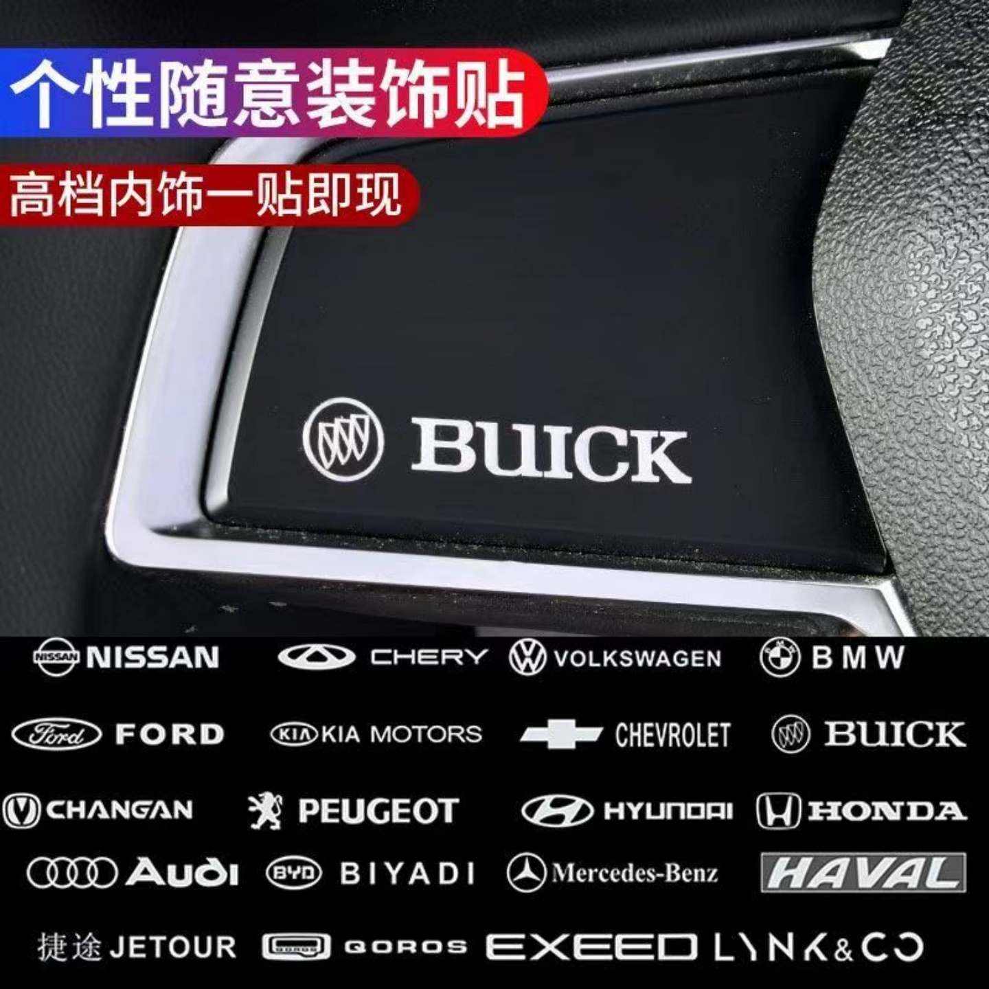 随意车贴 饰网红个性 创意车标装 饰贴金属车贴雨刷中控台车窗后尾装