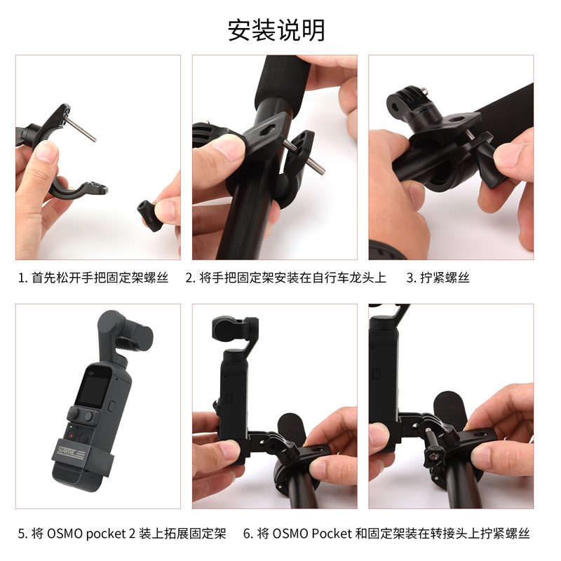 STARTRC适用DJI大疆pocket2 pocket3口袋相机铝合金属单车固定架骑行拍摄配件 3自行车支架拓展配件灵眸osmo
