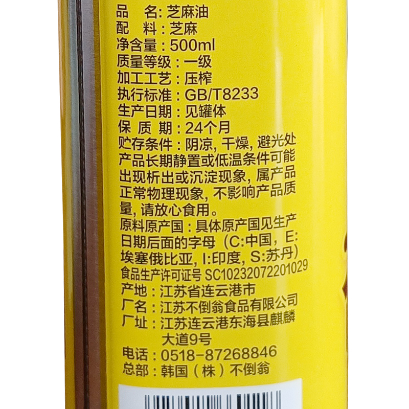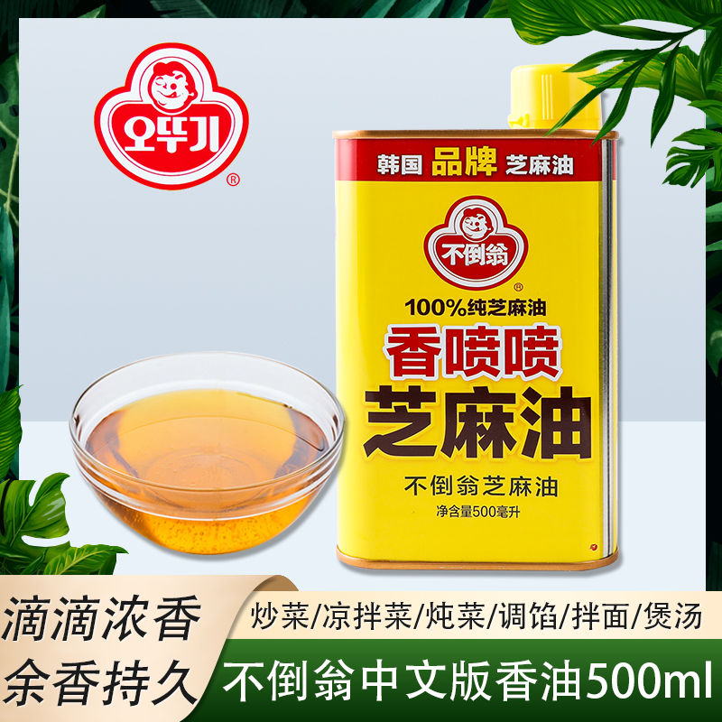国产不倒翁芝麻油500ml铁罐装 烹饪凉拌菜紫菜包饭调味香油调味品