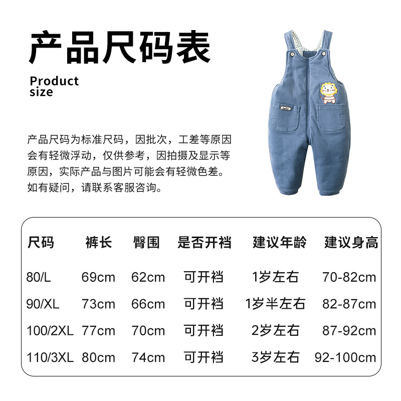 婴儿背带棉裤 秋冬款 加厚外穿男童冬装 儿童宝宝背带裤 2025新款 冬季