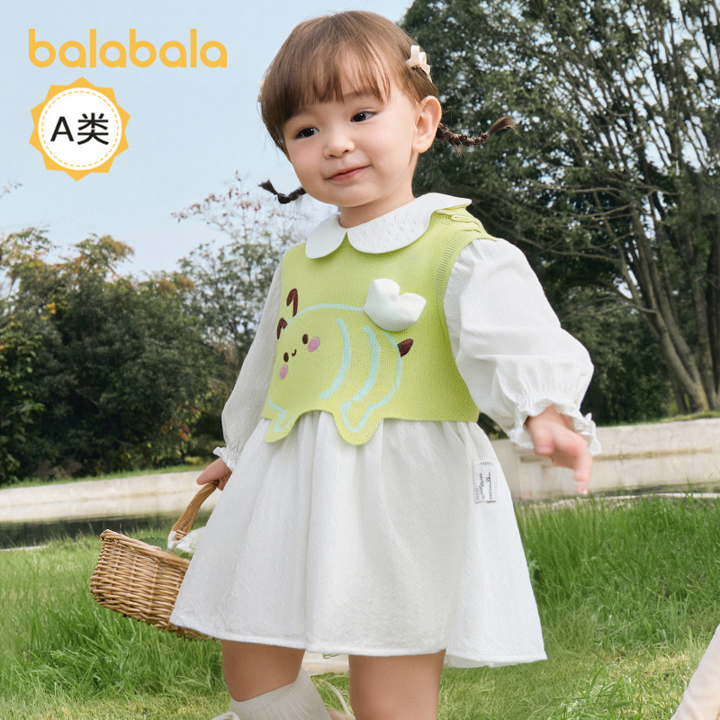 巴拉巴拉婴儿连衣裙套装 女童马甲裙子两件套宝宝衣服可爱儿童秋装
