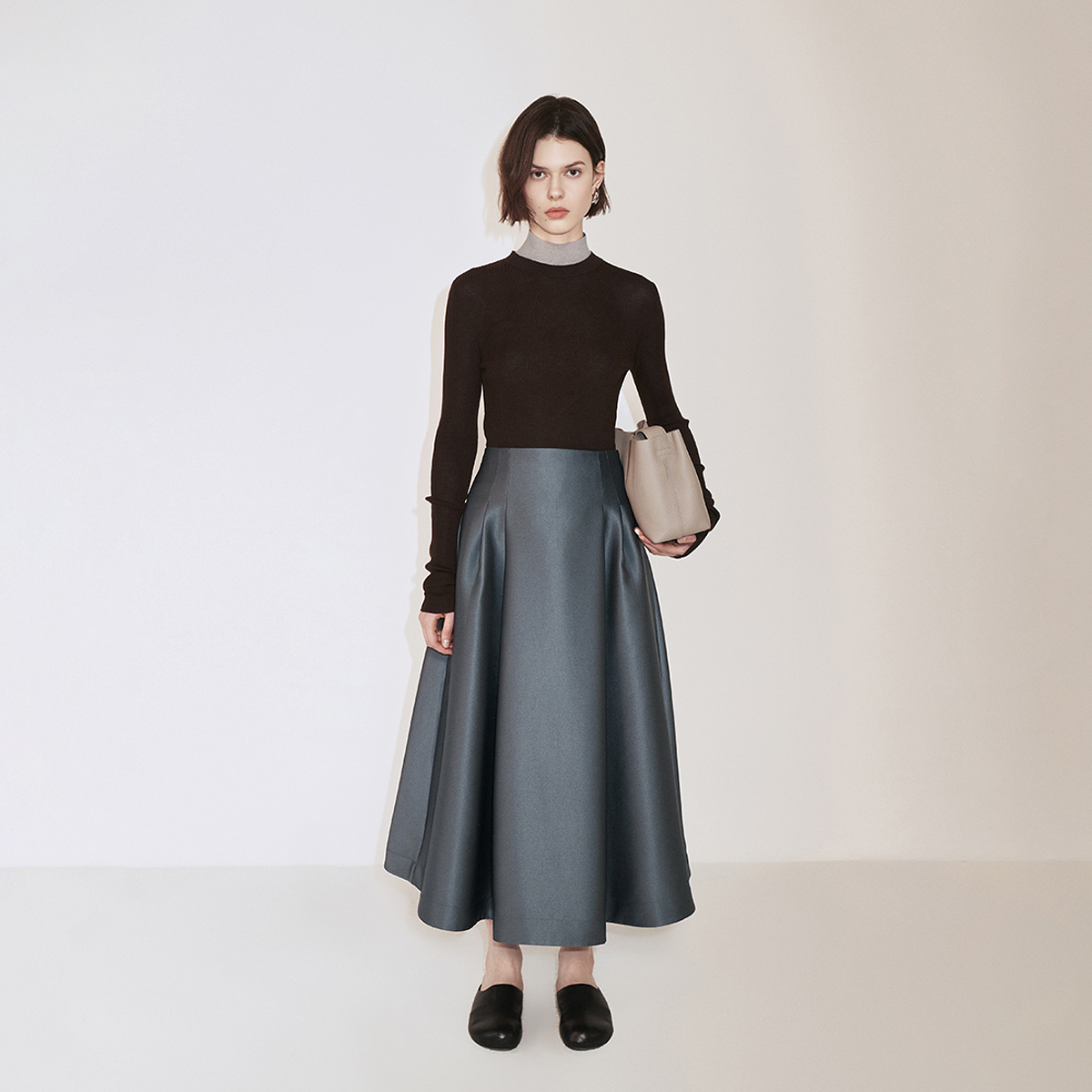 新品 a字裙静奢通勤秋季 大摆伞裙半身裙中长款 OCHIRLY欧时力